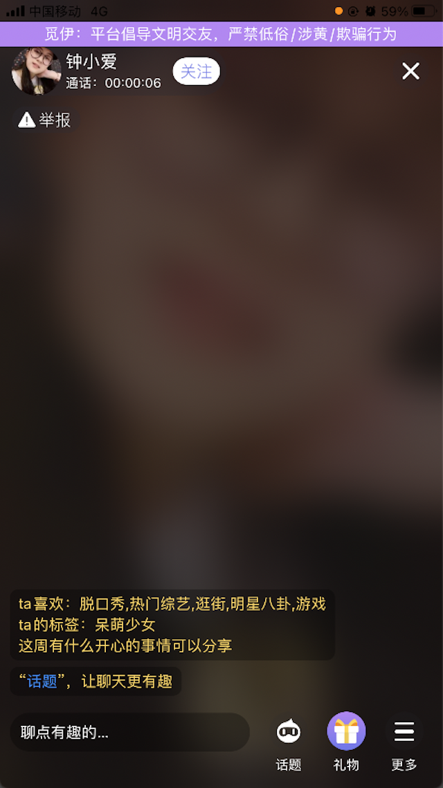覓伊擁有一套屬於自己的用戶匹配算法,通過分析用戶畫像、興趣愛好、交友標簽等資訊,幫助符合調性的同類用戶進行快速匹配,以一對一視訊的形式建立情感互動。