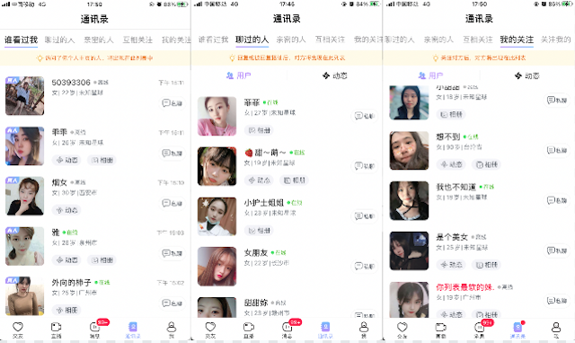 通訊錄可以快速定位到密友以及粉絲,可以知道我關註了哪些人和哪些人關註了我,還可以知道最近和哪些人聊過天。這樣就不用一個個找了,滿足了熟人社交的便捷。