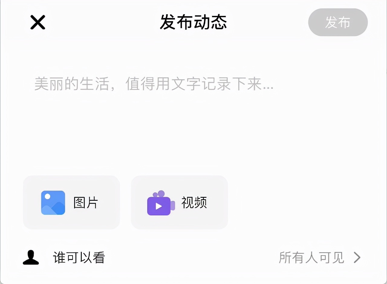 例如:可以發布圖片,還可以發布短視訊,針對查看權限,可以讓所有人看到,也可以隻讓好友看到。滿足了用戶多方位的發布需求,讓APP更好玩,更有靈活性。
