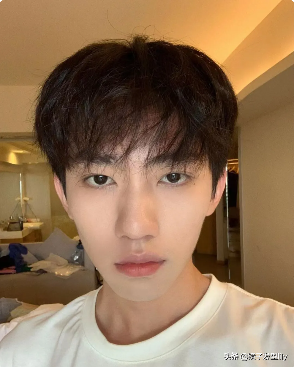 長臉型男士選擇齊眉瀏海的遮額髮型,可以讓臉型變得不那麼長,五官更趨標準,帥氣也就自然而然地呈現出來了。