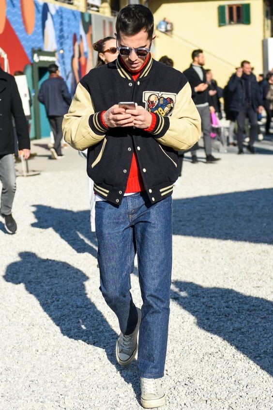 當然,你還可以利用休閒褲來呈現街頭風穿搭,最大程度地凸顯出棒球外套的活力感,讓造型看起來更加與眾不同。