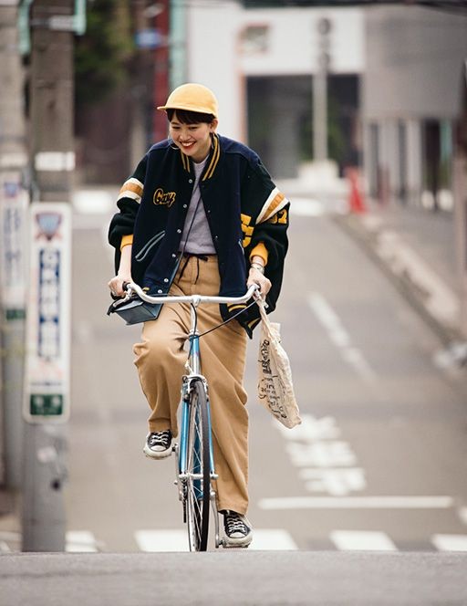 廓形棒球夾克作為外套,會在視覺上略顯膨脹,但看起來卻並不臃腫。將上衣的膨脹感與直筒型褲裝相結合,恰好可以通過曲線呈現出腰線,讓造型更加出眾。