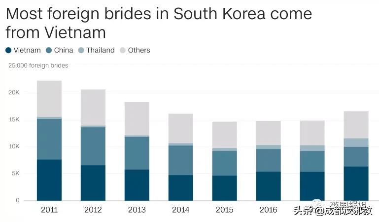 而這其中越南新娘是最多的,2018年韓國新郎和外國新娘的跨國婚姻中,越南新娘的比例占到將近40%。
