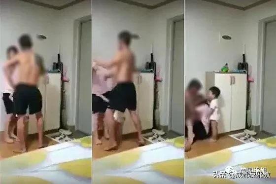妻子被打得蹲在地上,幼小的孩子眼睜睜看著母親被叫車畫面,哭著站在縮在角落裡的媽媽身邊,不知道該怎麼辦。