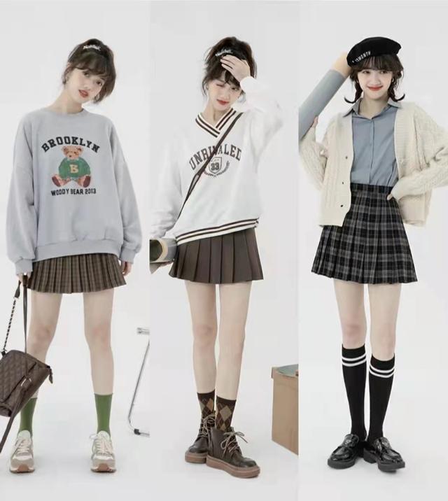 短款的格紋裙或者是純色的裙子,都能夠展現出當下的復古氣氛,穿在身上既精緻又文藝,用基礎款式碰撞出了不同的時尚效果。上半身搭配衛衣或者是針織開衫,有減齡的學院風,又有時尚感。