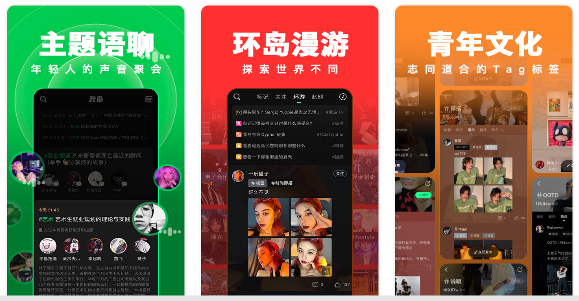 它有泛潮酷青年多元興趣社區:每一座島都是一個青年興趣,有hiphop、搖滾、蒸汽波、穿搭、tattoo、塗鴉、jk等島。