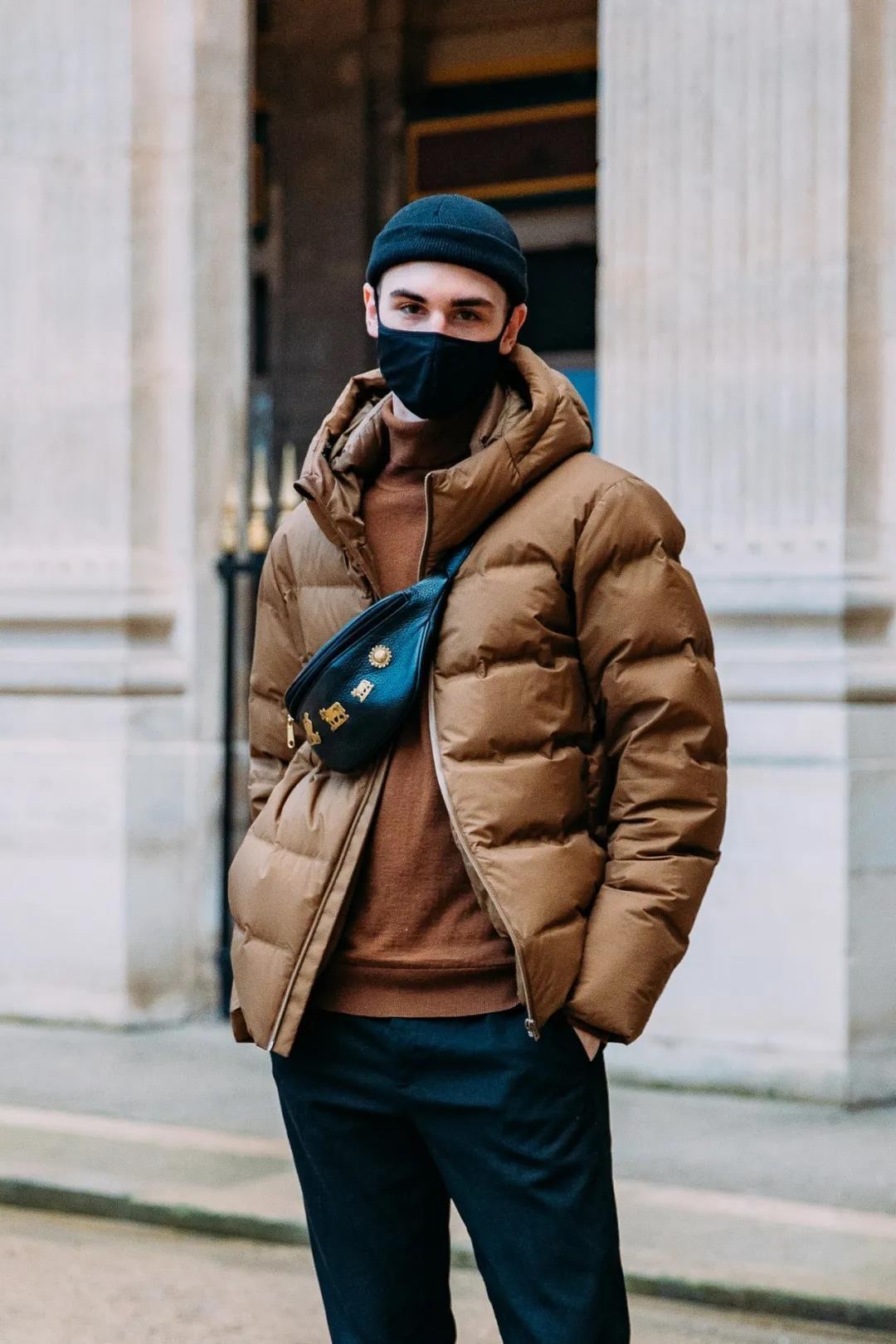 法國男人深色往往都背了一個包,不一定裝了什麼東西,卻一定能讓服裝變得更時尚,好比斜跨的腰包,讓厚厚的棉服顯的不臃腫,也顯得更高級。