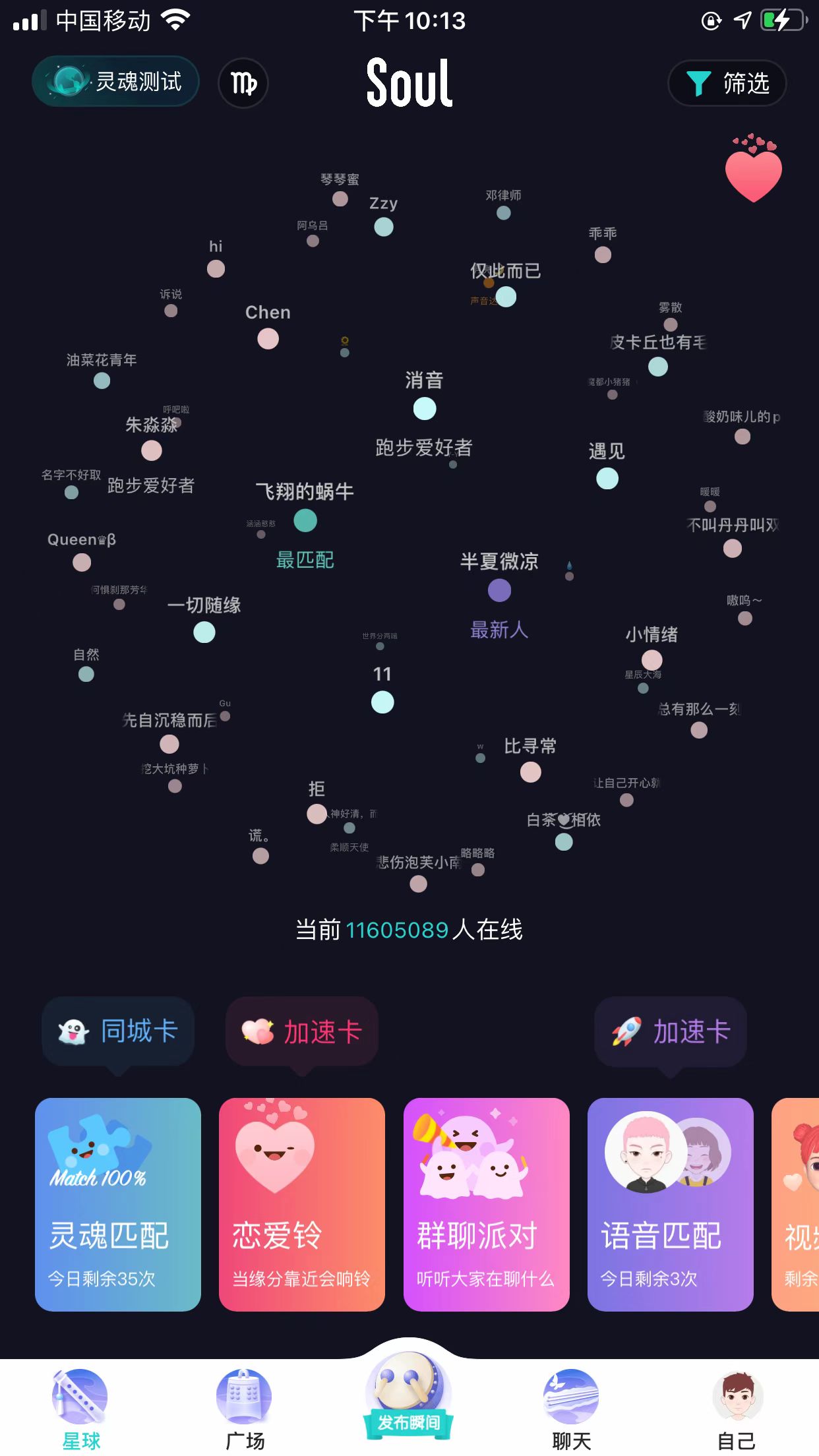 Soul這個以前用了很久的,它的界面也比較簡潔,「跟著靈魂找到你」,我也曾喜歡過傷痛文字,裡面的人文藝略帶矯情,比較高冷,雖然現在的用戶質量比以前降了不少,但還是對它偏愛,不過戀愛要謹慎,說好的女生,有可能是位摳腳大叔?裡面的功能還是比較好的,靈魂匹配,可以匹配到同城或者非同城的異性。