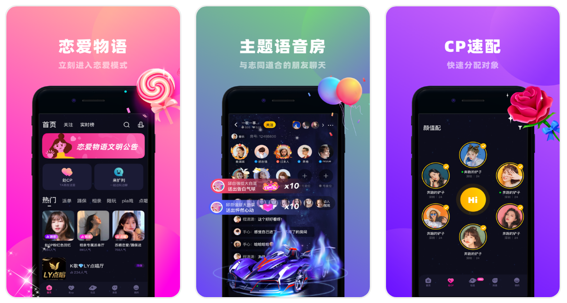 語聊房間,K歌,擴列,電競,踢保,相親海量娛樂派對,隨時隨地多人語音連麥暢聊,相親房、K歌房等的個性房間,等你來參與。