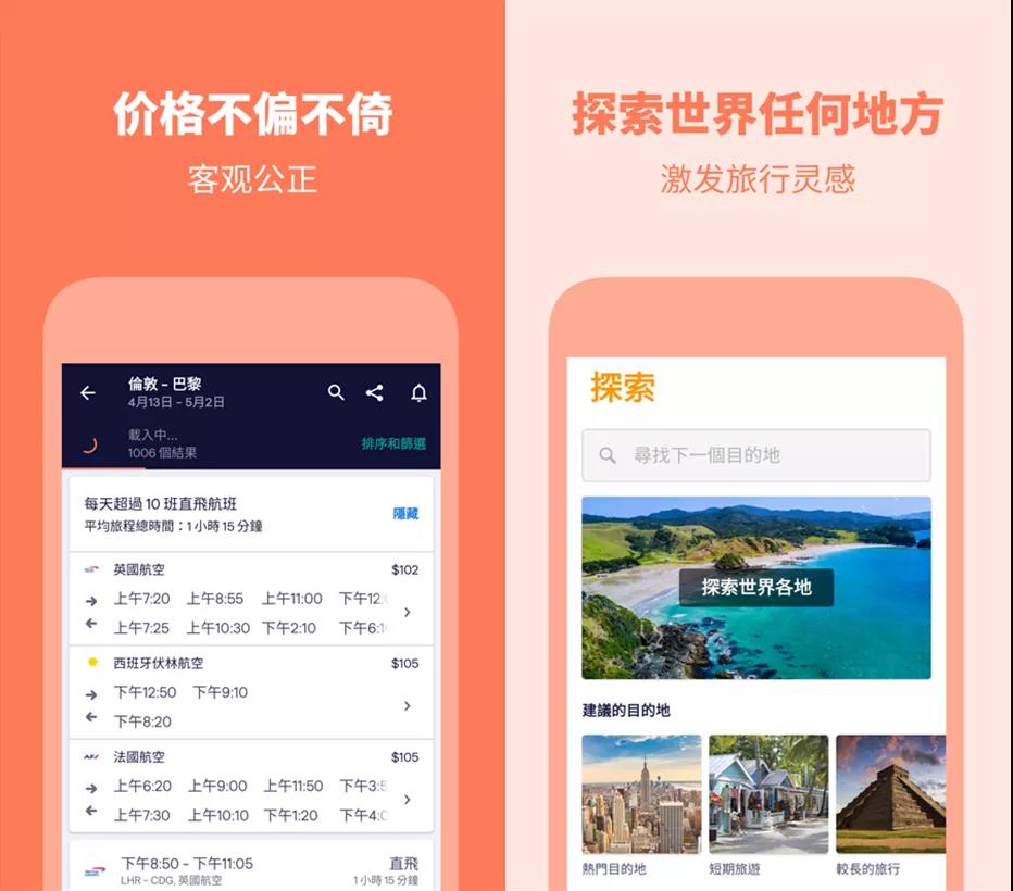 出門旅行的支出大頭就是交通花費,這個App上可以對比機票航班的價格,你可以選定一個地點和大概的時間段,就可以查到這段時間內最低的機票,計劃出行之前可以先蹲蹲有沒有低價機票。
