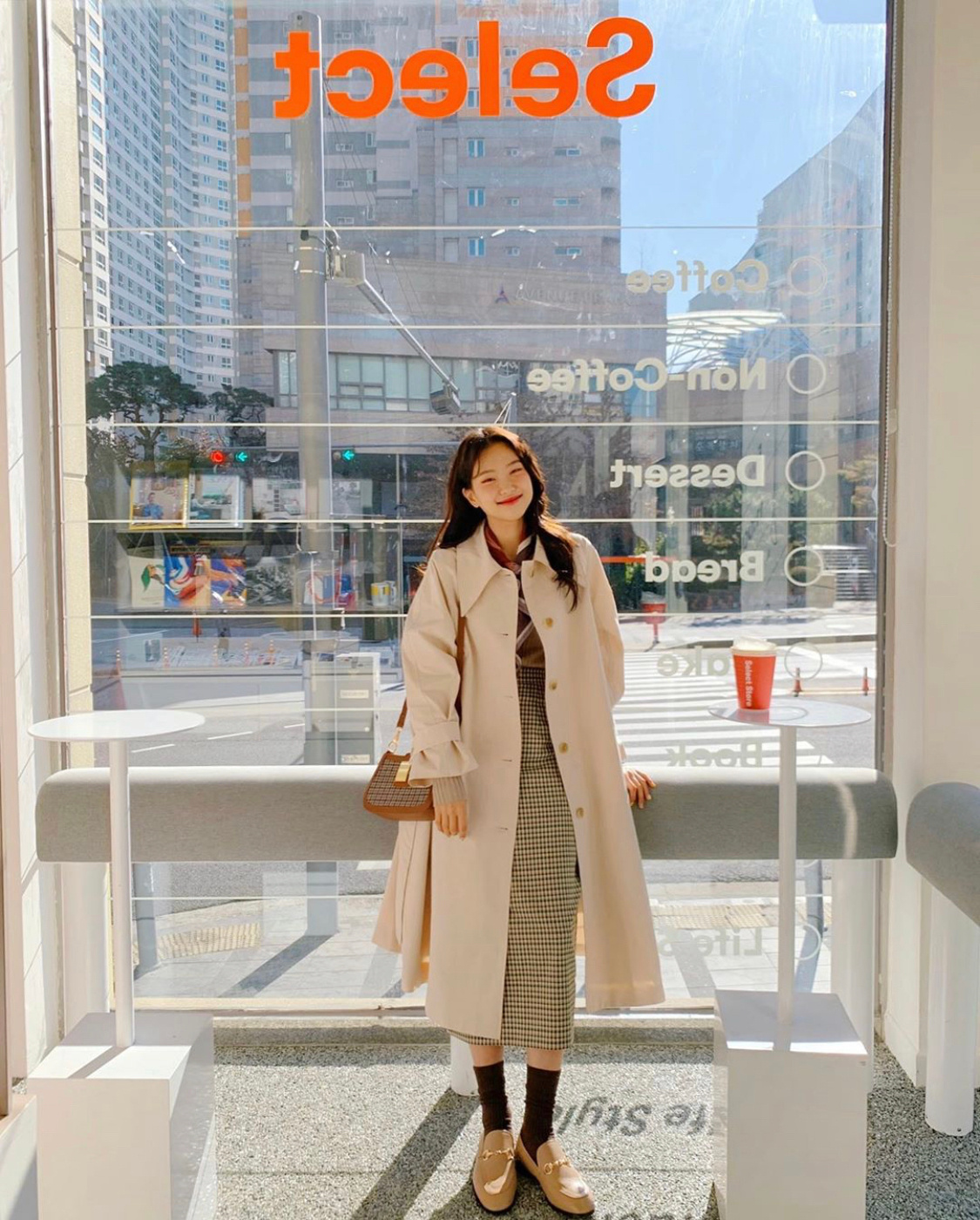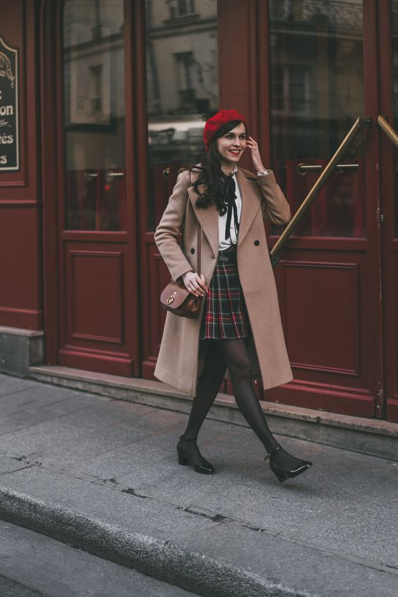不一定只是穿著緊身半身裙,搭配一款長款大衣,也可以嘗試短款的格紋半身裙,來搭配經典的駝色大衣,這種風格既有學院風的感覺,又成熟女生的魅力,能夠讓搭配做到多元化。