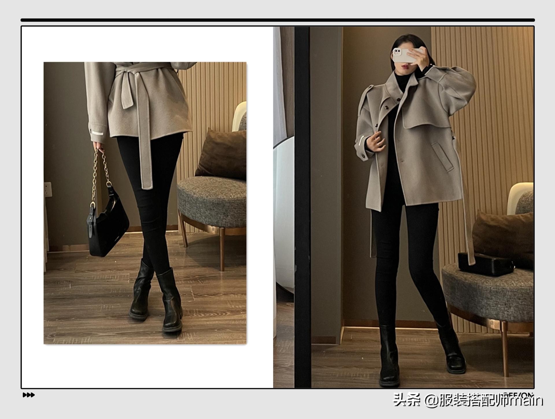 把短大衣的腰帶一系,身材比例瞬間被優化好,看到示范是不是很羨慕!