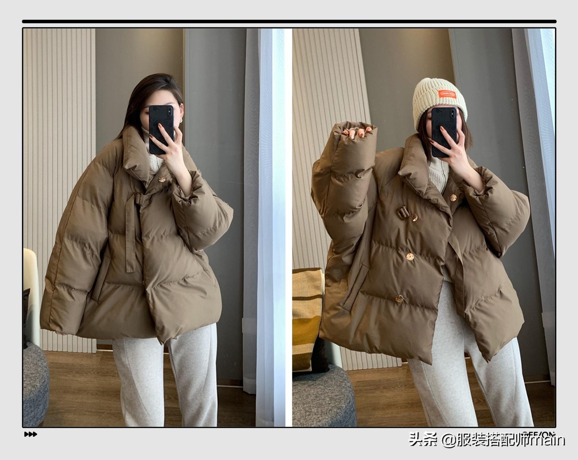 這是我很喜歡的短款棉服,寬寬鬆松的麵包服版型完全不挑人穿,它的系扣是它的亮點所在。