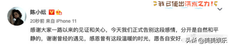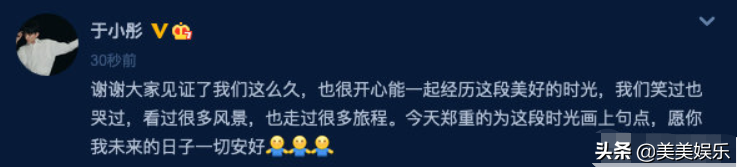 2018年年底,於小彤以一則非主流微博官宣戀情結束。