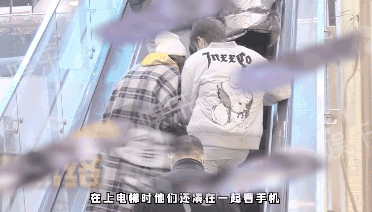 關係看上去十分親密,乘坐電梯時更是頭挨著頭一起看手機。