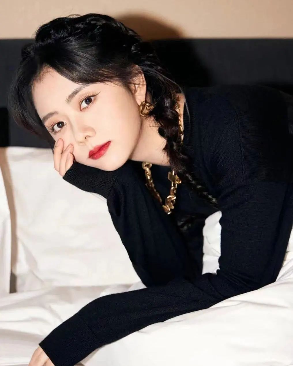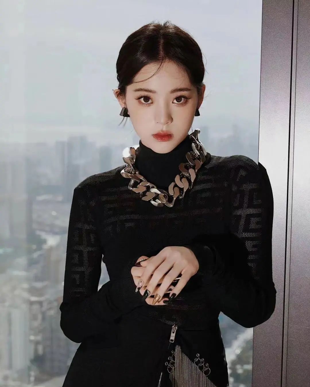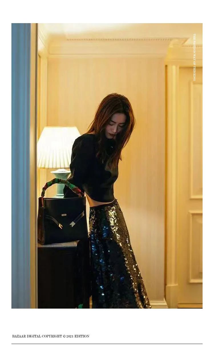 或者像大表姐那樣,選一種BlingBling的材質也可以,即使是全黑的造型也不會顯得死板。