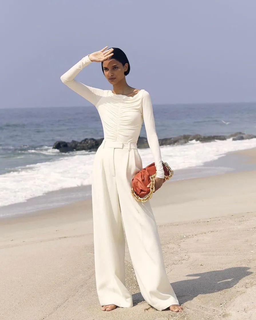 雖然這兩種顏色都有各自的迷人美感,但駕馭起來確實不太輕鬆。全黑或全白的造型,看上去高級乾淨,夏日露膚度多一點,穿搭上基本不會出錯。