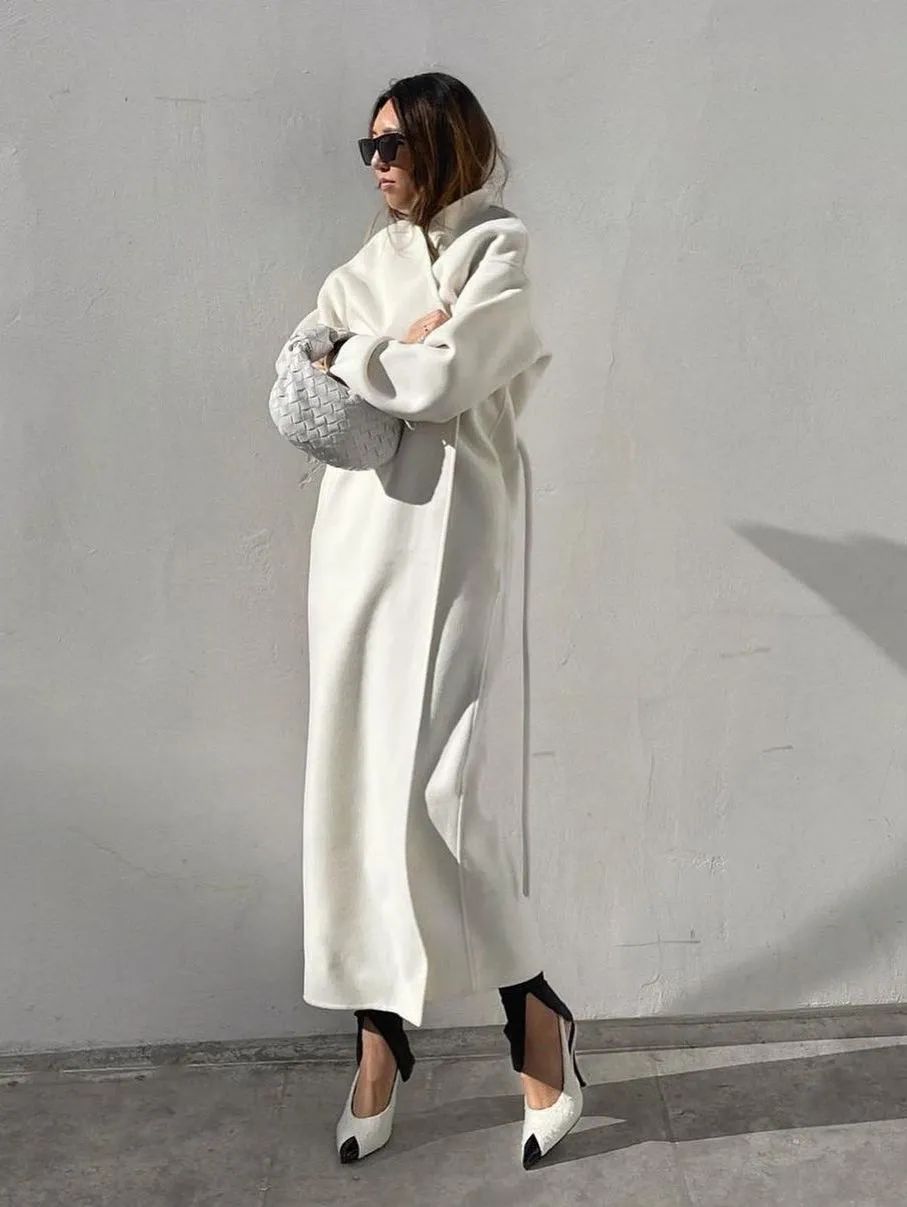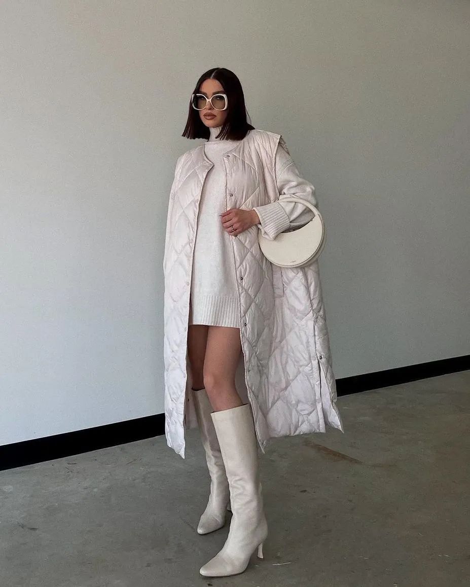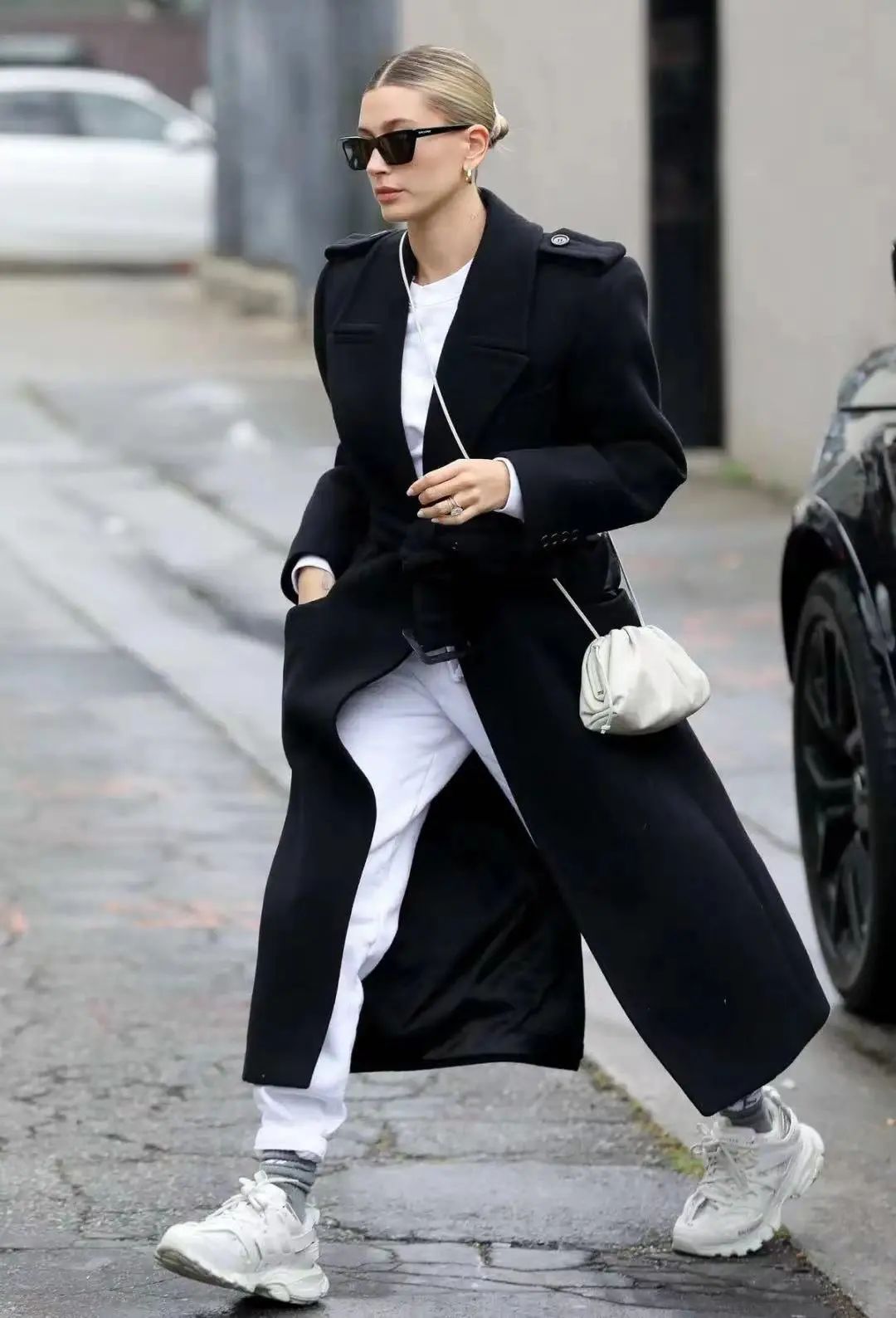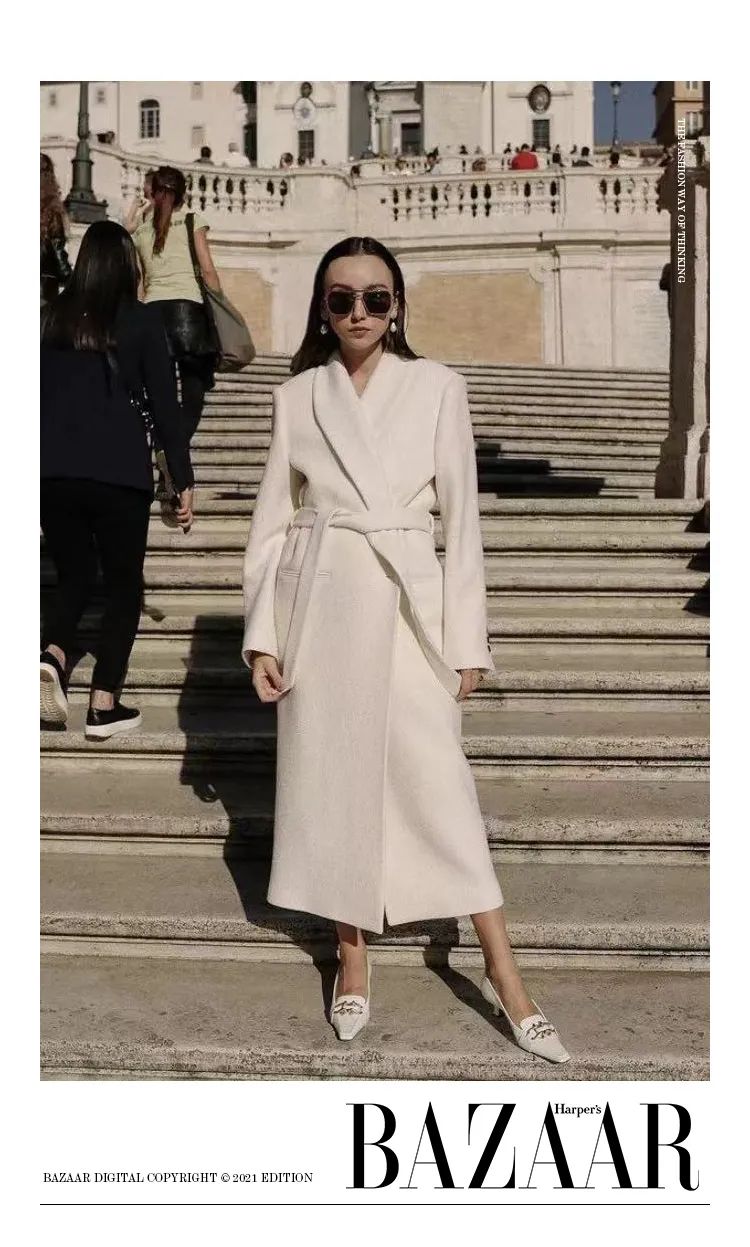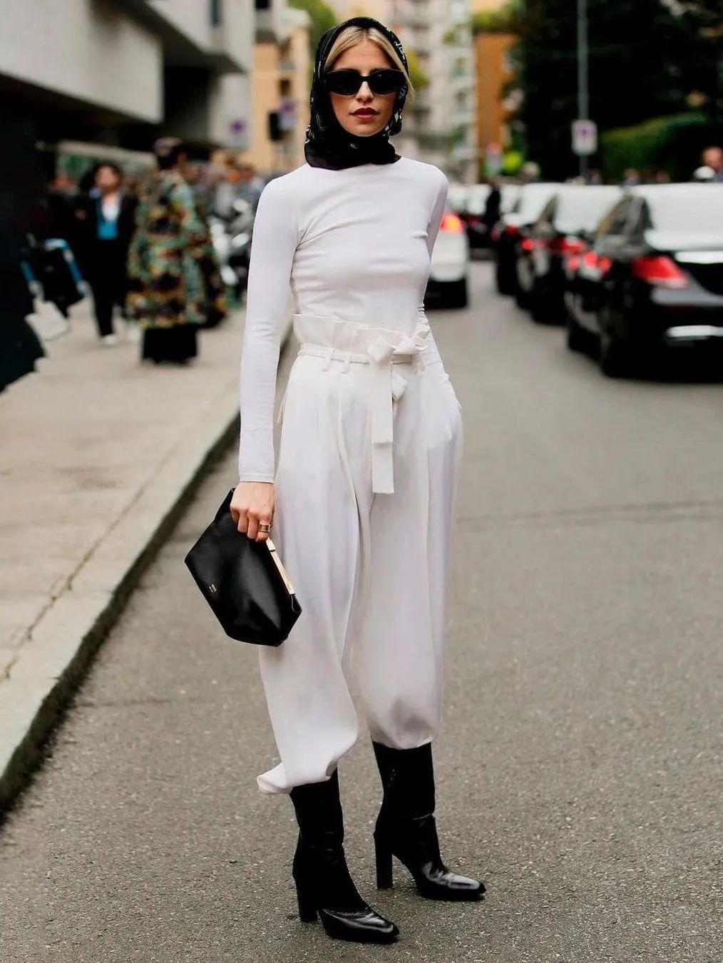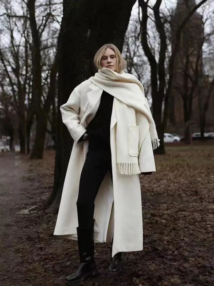 在大面積的白色中加入一點黑色元素,也能讓你的秋冬造型更有層次感。