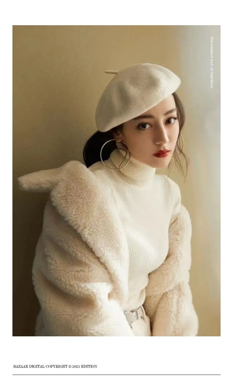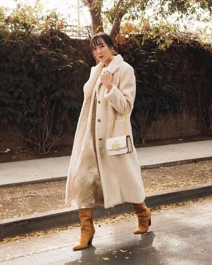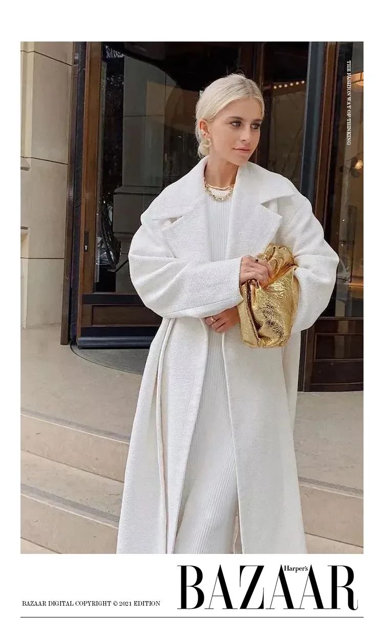 而在秋冬,也可以選擇白色毛絨、針織等元素來實現單品質感的變換,也能讓簡約的造型看起來很不簡單,立馬變得有精神氣。