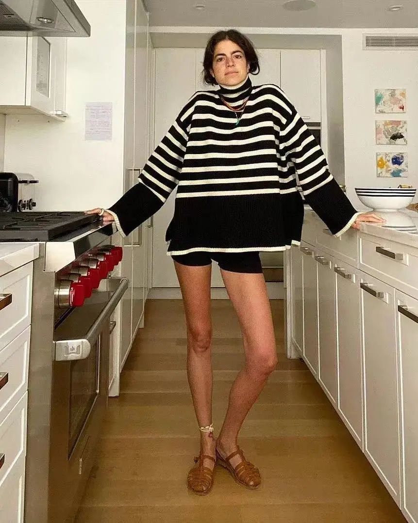 如果覺得棋牌格這樣活潑而搶眼的圖案,少了點高級感,那麼更為中性的黑白條紋可能更適合你。