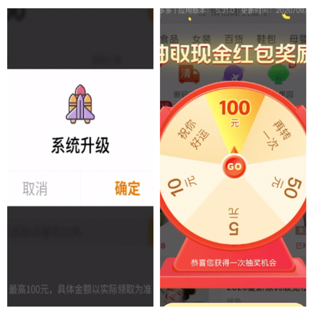 有些App還相當狡猾,廣告頁面會偽裝成系統彈窗或者抽獎紅包,誘騙用戶點擊跳轉到別的網站或App。