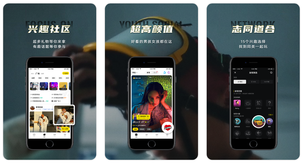 專屬年輕人的興趣社交平臺,有目的篩選,分類清晰明了,所以交友的目的性更加明顯,更容易找到志同道合的小夥伴。