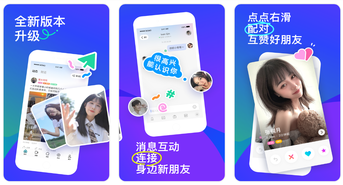 MOMO是一款開放式移動社交應用。新版本全方位融入直播、短視訊等視訊元素,建立了沉浸式、場景化的社交方式。