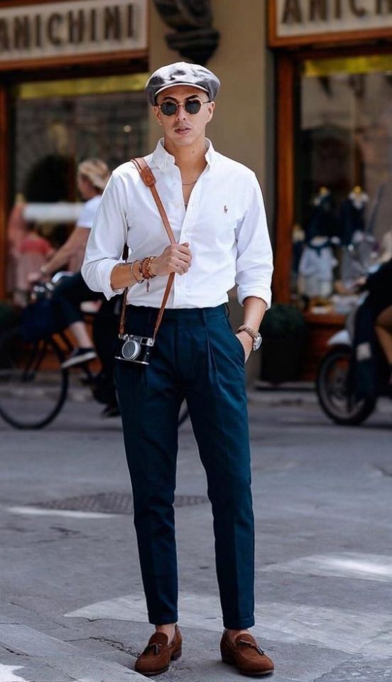 相比於綁帶皮鞋,樂福鞋可謂是「懶癌福音」,「一腳蹬」的穿法尤其適合簡約的夏季。同時,選擇鞋頭尖度鈍一些的樂福鞋會讓整體氣質更加隨意,而尖頭樂福鞋則更顯犀利,別看樂福鞋簡單,上身效果可謂不凡。