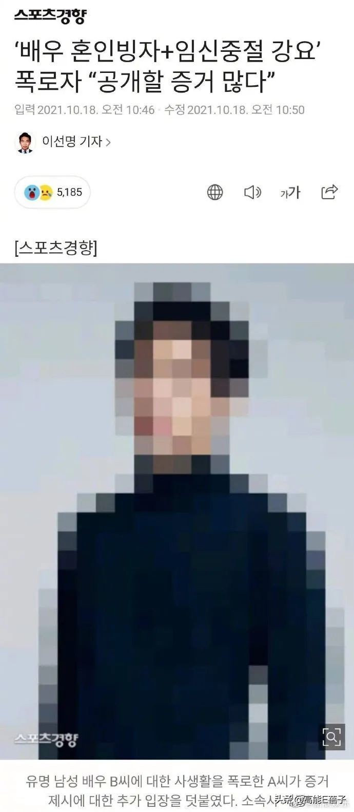 17日,有韓國網友在韓網nate pann發表了一則題為《我要曝光大勢演員K某反差及厚顏無恥的真面目》的帖子,爆料大勢男演員K某以自己紅了為由,單方面分手並強迫她墮胎,還在背後批判一起合作的演員、導演。