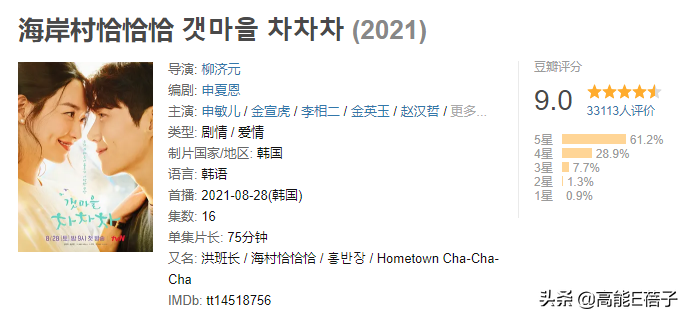 播出後,它在豆瓣的評分一路上漲,到收官時已經9.0分,這在韓國愛情劇裡算是非常高的了。