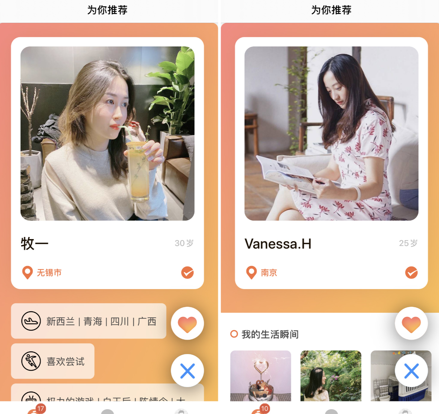 從產品的主功能區看其與探探的形態頗為類似,用戶可以對系統推薦的好友選擇喜歡/不喜歡,每天會限制普通用戶查看匹配的數量。