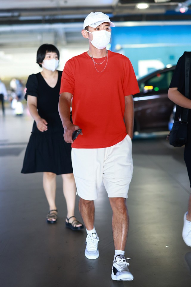 如果單品的配色太過亮眼與誇張,配合配飾也能夠讓整體氣質得到平衡。張繼科就選擇了大紅色T恤配合淺色短褲,看起來頗有RAP范,而項鏈的加入增添了幾分光澤,也填補了純色T恤的空洞,活力十足而不失帥氣。