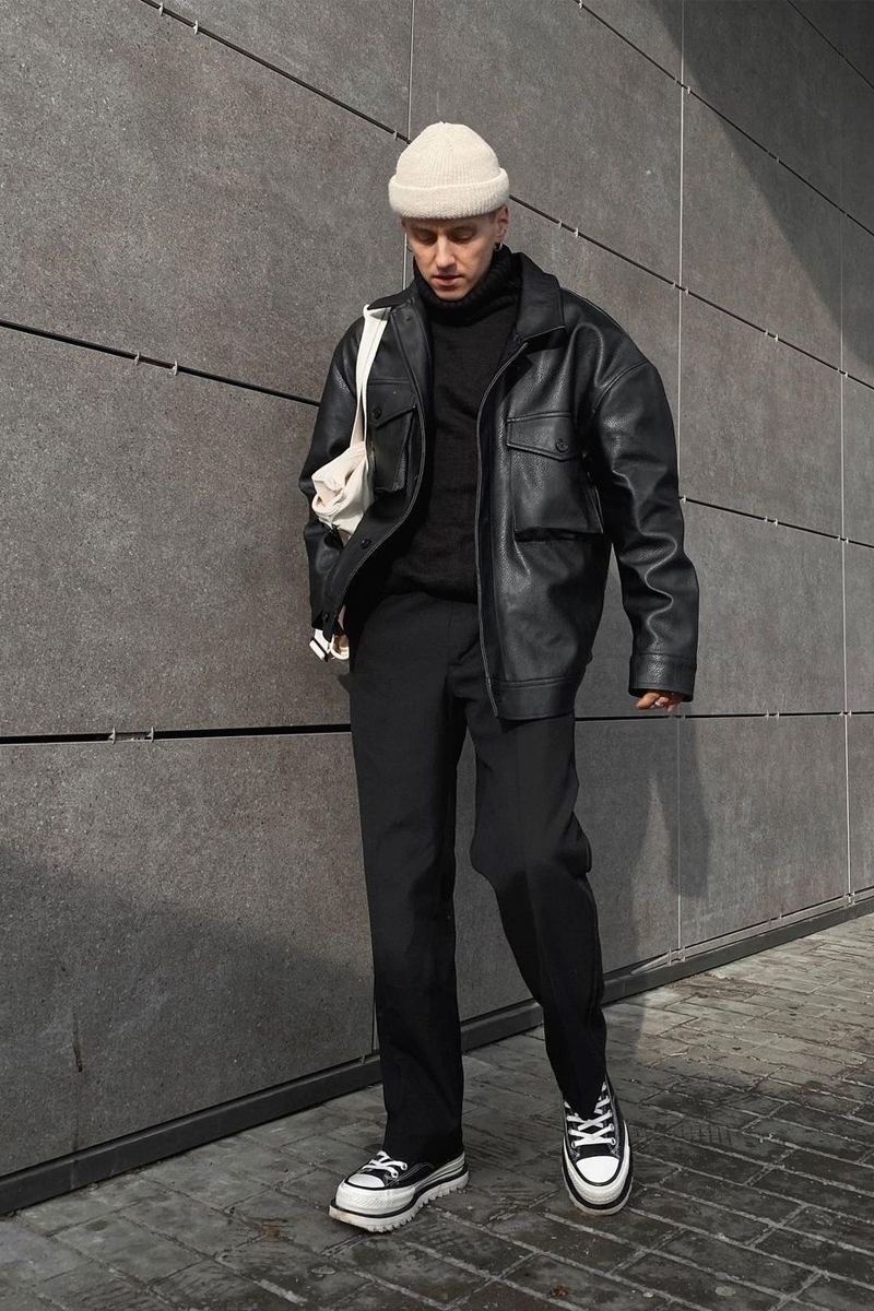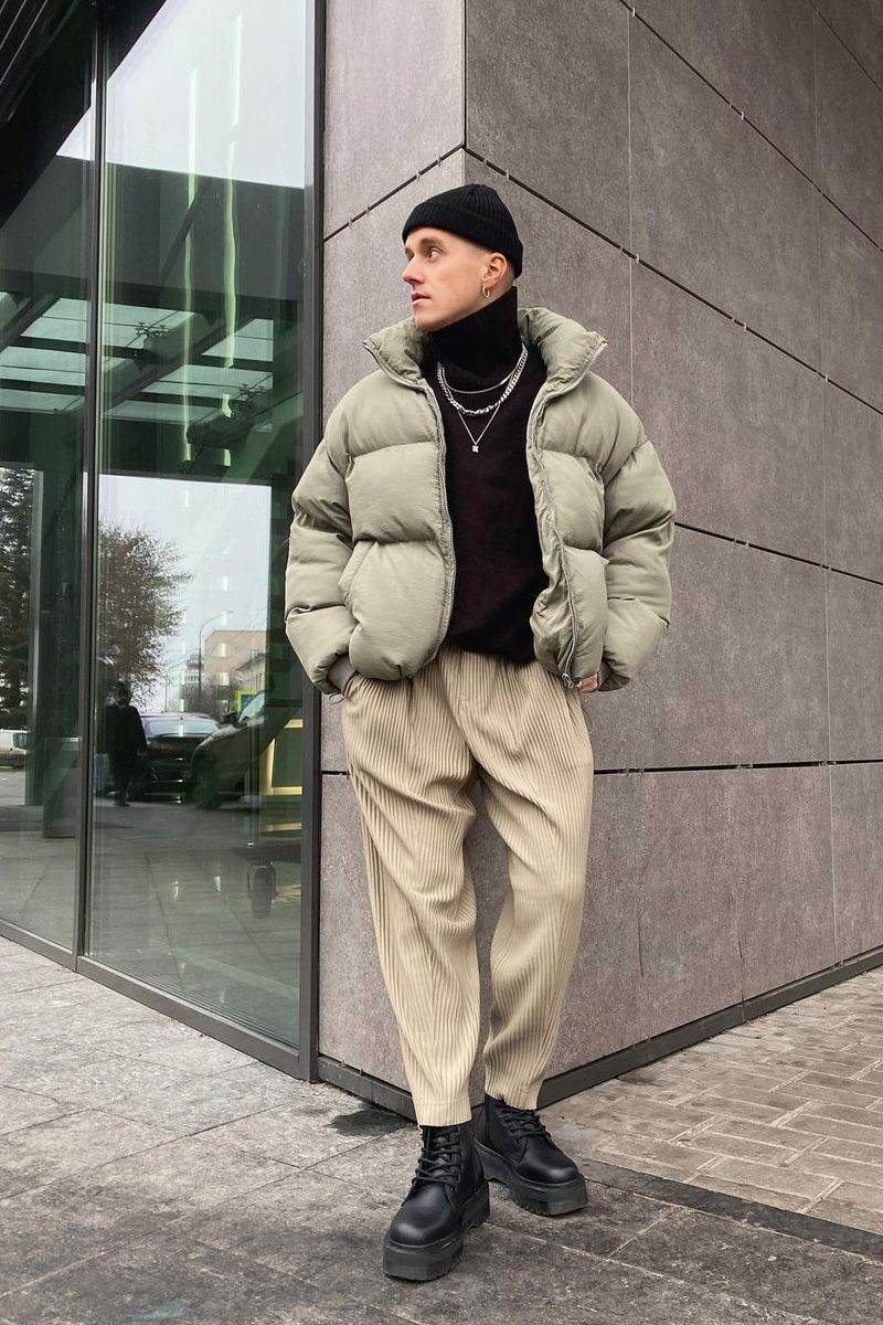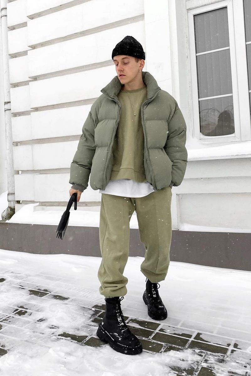 一米七的男生完全可以在冬季裡選擇一身純色的搭配,外套長褲一鞋子即便選擇相同的配色,也並不會顯得違和。這種選擇在一定程度上還能增添搭配的整體感,防止色彩的割裂拉低身高,呈現出更加修長的身材效果。