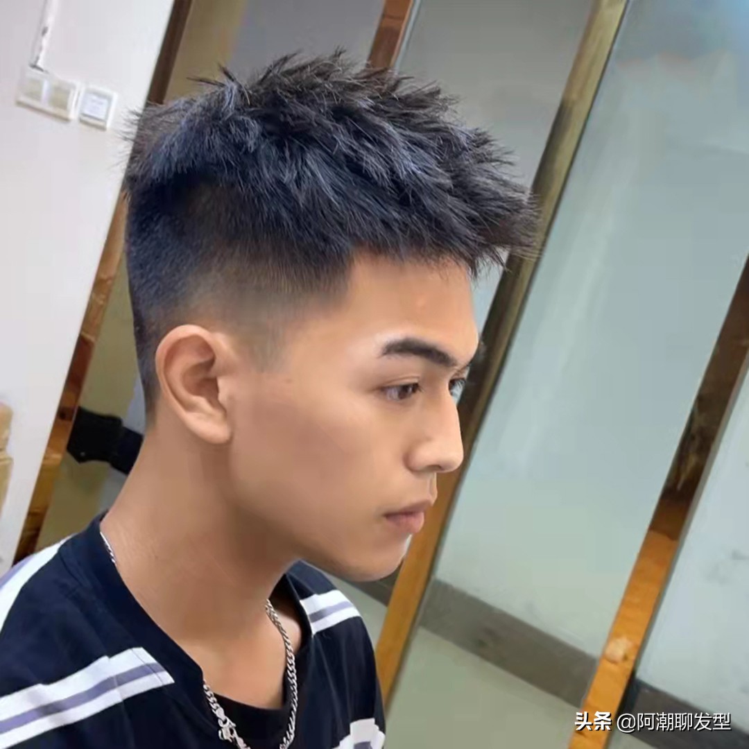 平時喜歡追求一些個性髮型的年輕男生,可以試試這款凌亂個性短髮,先把兩邊的頭髮漸層鏟出漸變的效果,鬢角精修一番,上面的頭髮及瀏海保留一定的長度,再剪碎一些,然後在打造造型的時候瀏海稍微吹翹起一點,再用手抓出一些凌亂感,這樣整體看上去特別清爽有個性,而且時尚又帥氣,不管學生黨還是上班族都非常合適!