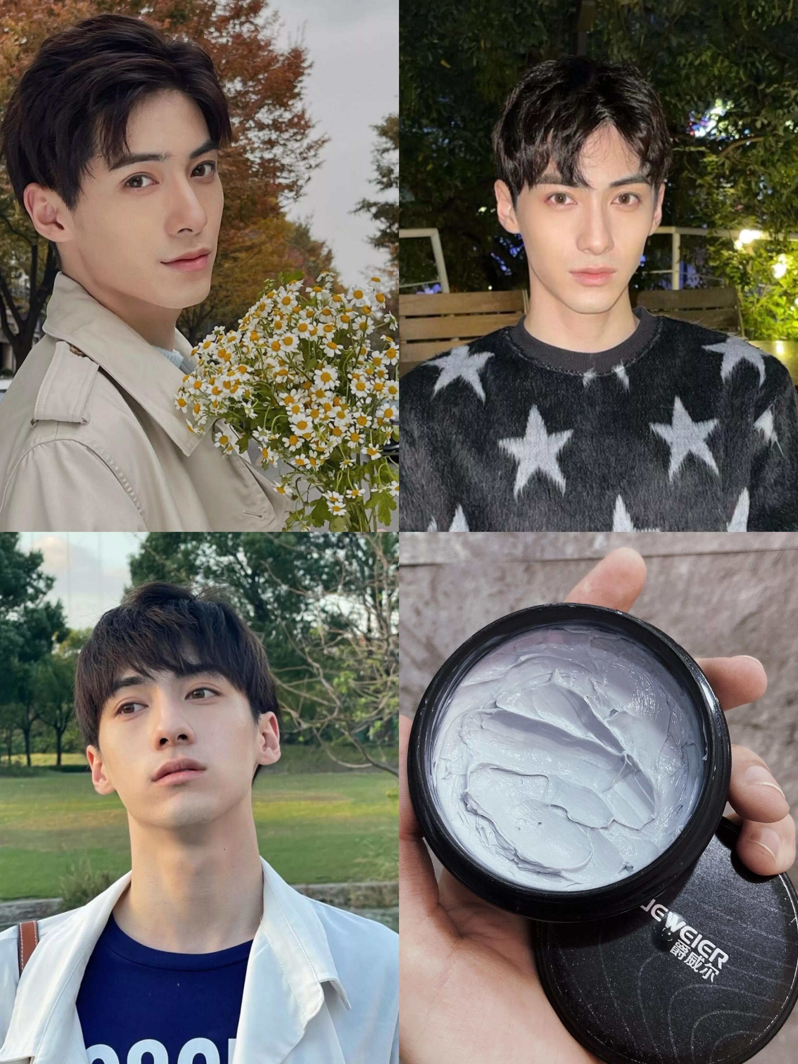 2️用發蠟抓——然後用適量的爵威爾發蠟在掌心揉搓,手指少次多量的插入頭髮做出自然有層次的紋理,這個步驟就要把頭髮塑造好啦~我用的是爵威爾的發蠟,很軟的膏體,塑造造型比較容易