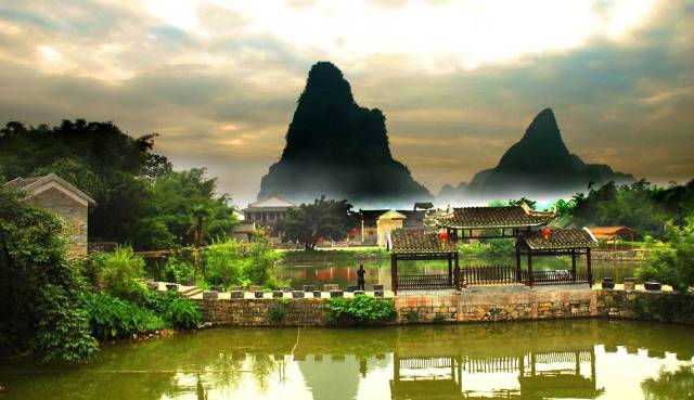 興坪古鎮,距陽朔縣城25公里,20元人民幣的背面圖景就是在興坪。古鎮城牆輪廓尚清,隨處可見古磚瓦陶瓷殘片,只是原來車馬來往人看人的繁華縣城,呈現出一派青山幽幽、村舍幾座的肅靜氣氛。