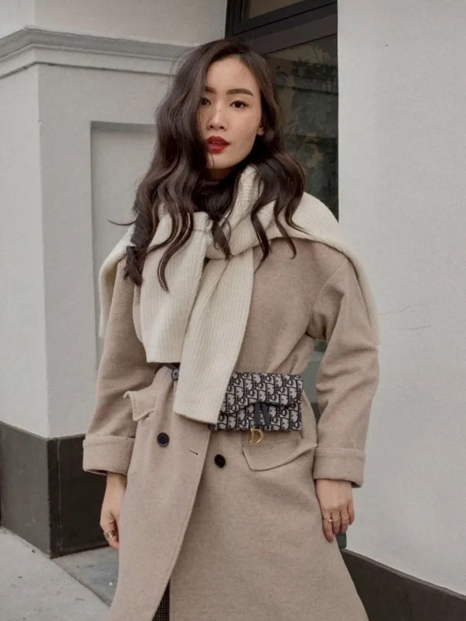 毛衣+大衣在北方的冬天可太經典了!但大衣的版型可以選的略微大一點,這樣裡面穿上毛衣也不會顯得緊促。