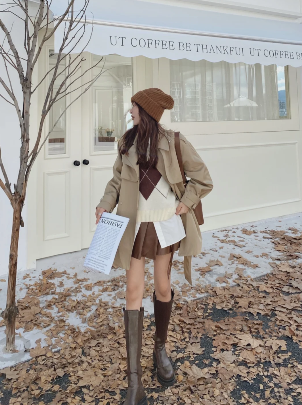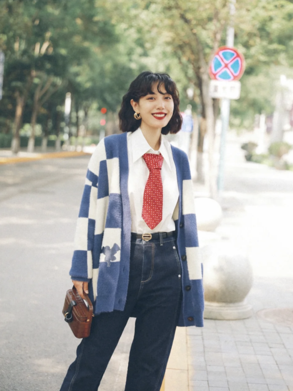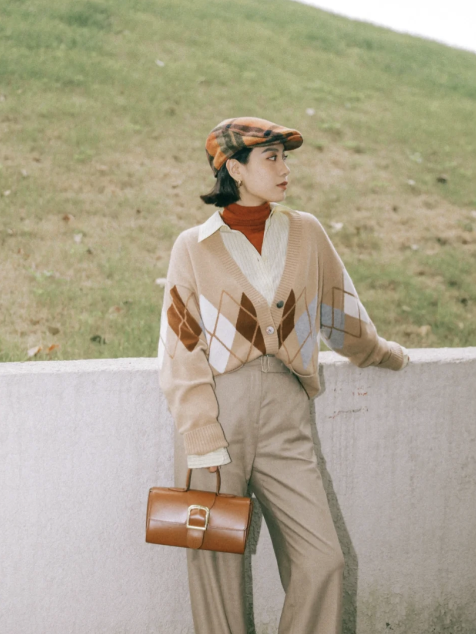 毛衣+風衣一直是非常實穿的搭配。因為風衣的調性帶有英倫架式,所以毛衣可以嘗試帶有菱格紋、拼色的復古圖案。