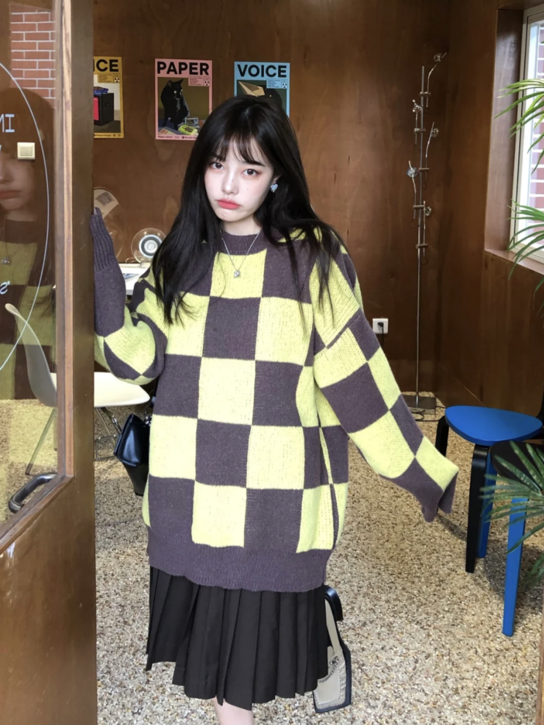 短款的百褶裙則更適合美式復古的校園風,寬大的毛衣遮住裙身一半,蘋果型身材愛了!