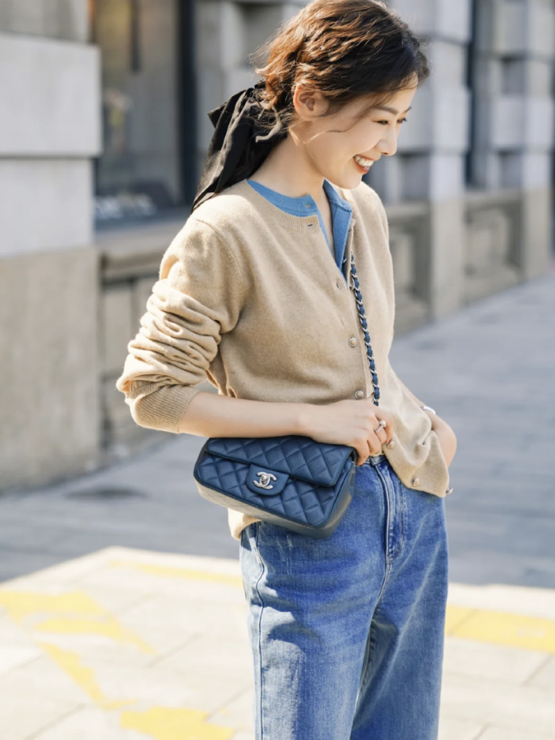 和毛衣感覺上最相近的就是小香風了,同樣是優雅、知性的代表,極具女生味的搭配很有吸引力。
