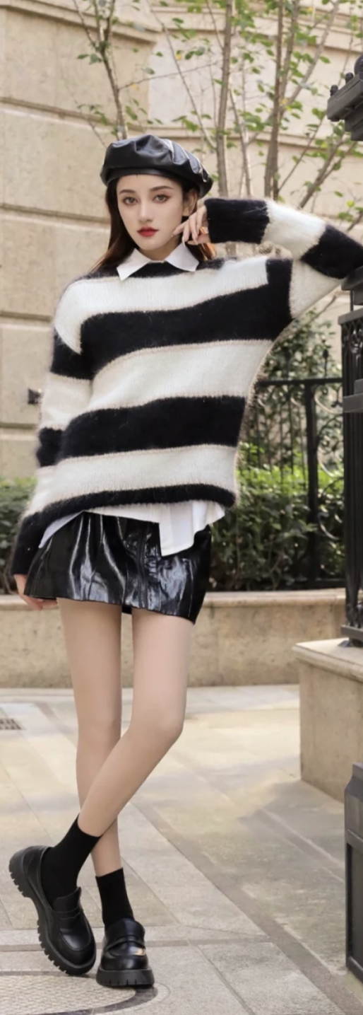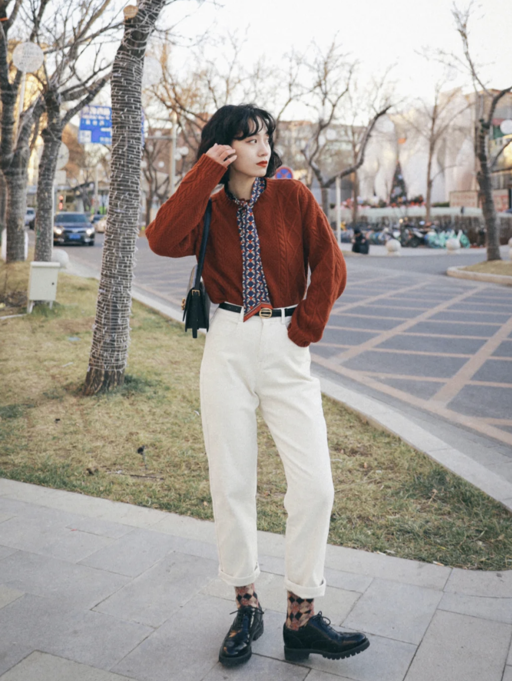 這種搭法最為簡單,各式各樣的毛衣搭配不同的下裝,輕鬆時髦不費力~