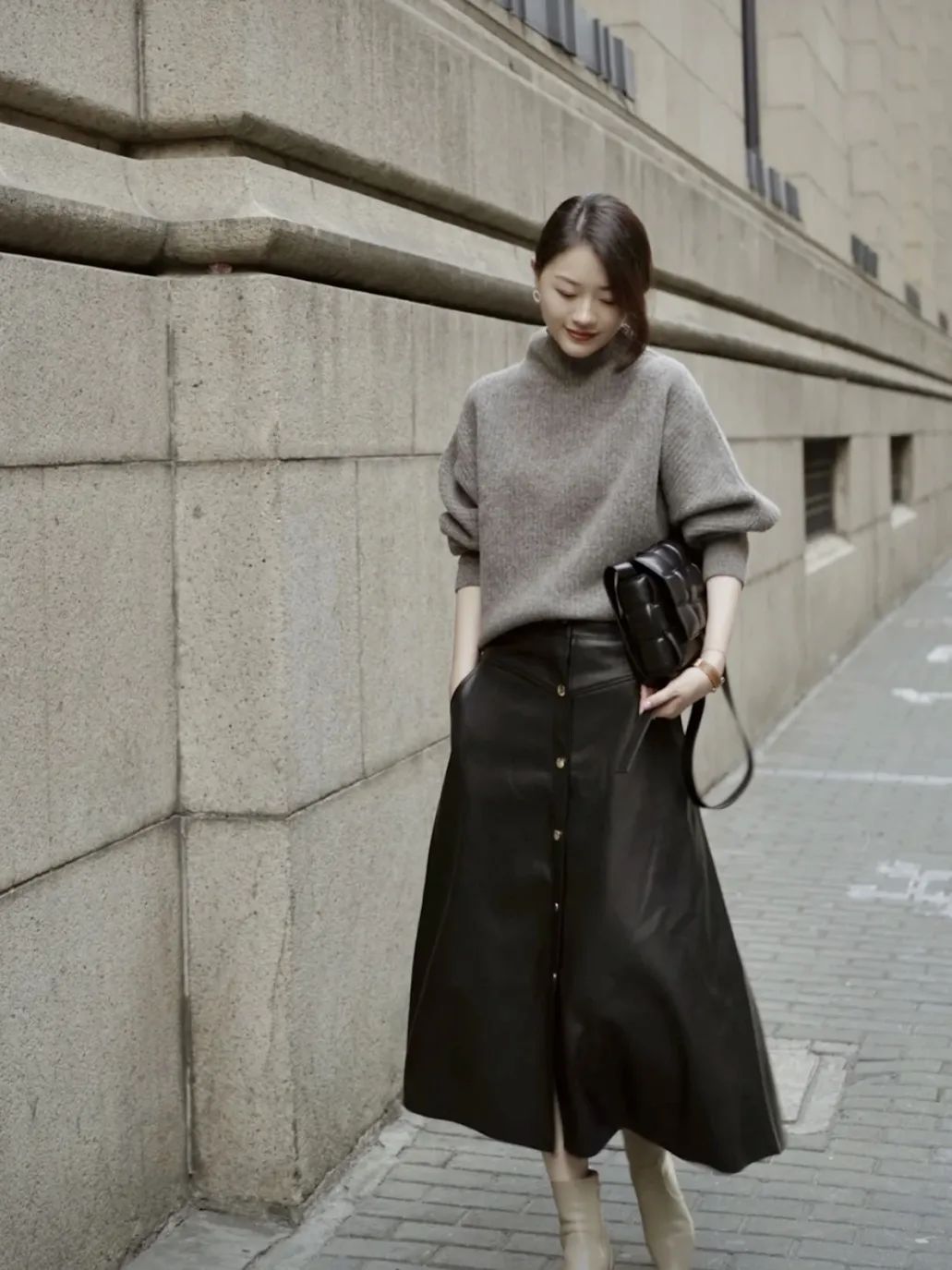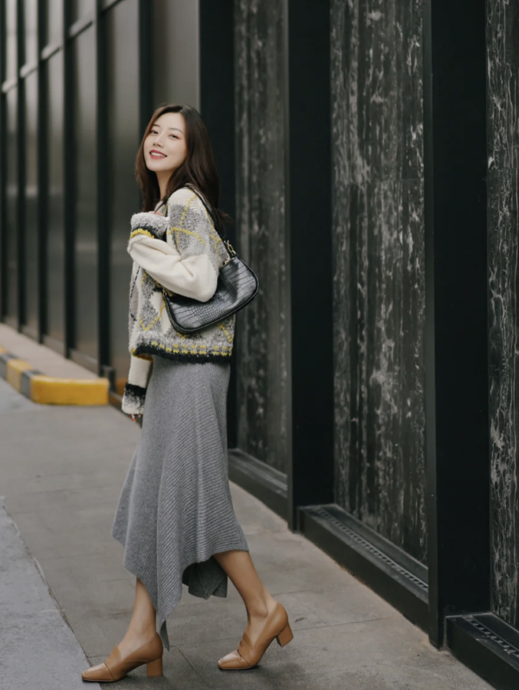 不規則半裙就很有設計感啦~穿搭上不會那麼死板,上半身選擇一些帶有流行元素的毛衣,單穿或做內搭,都有看點~