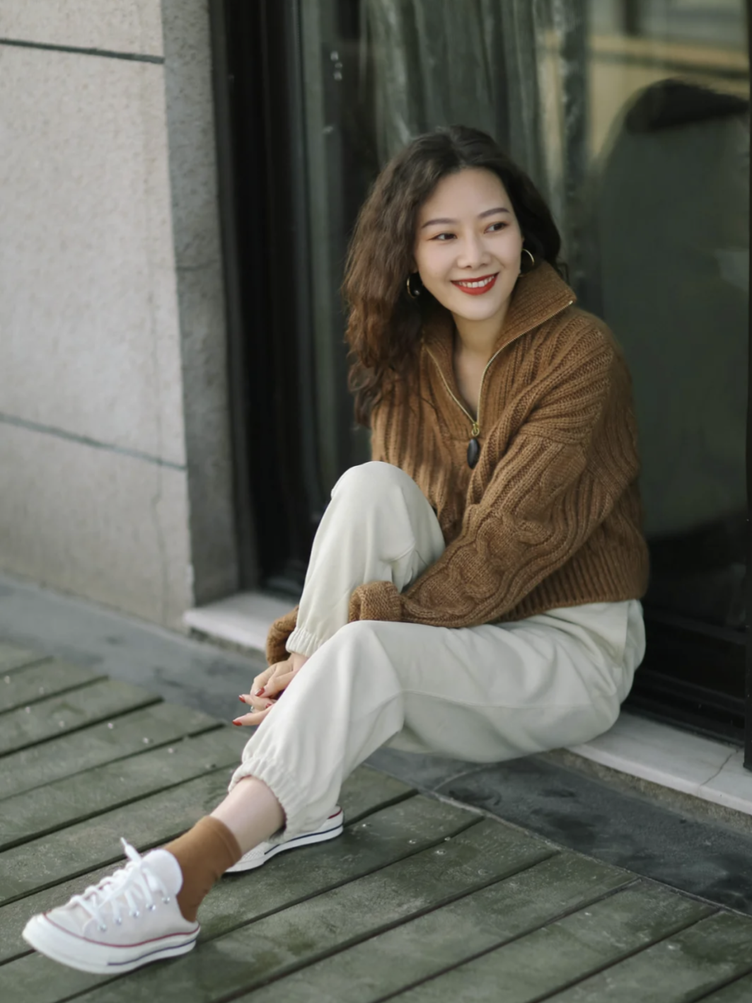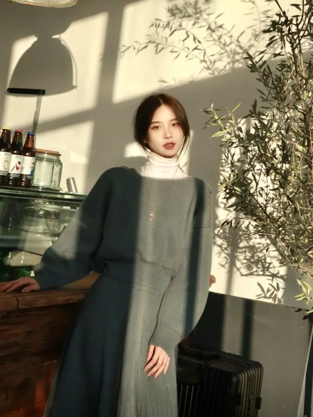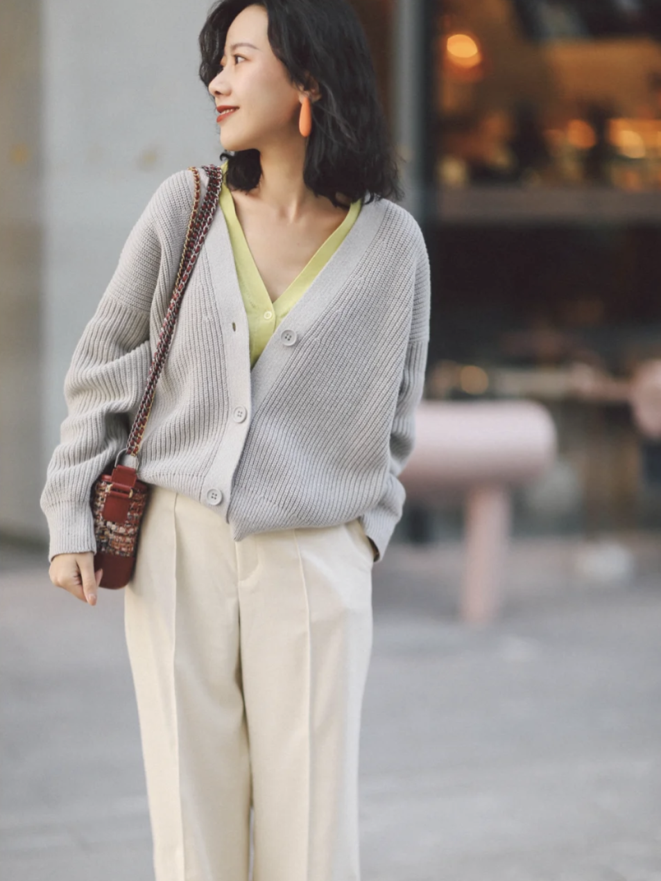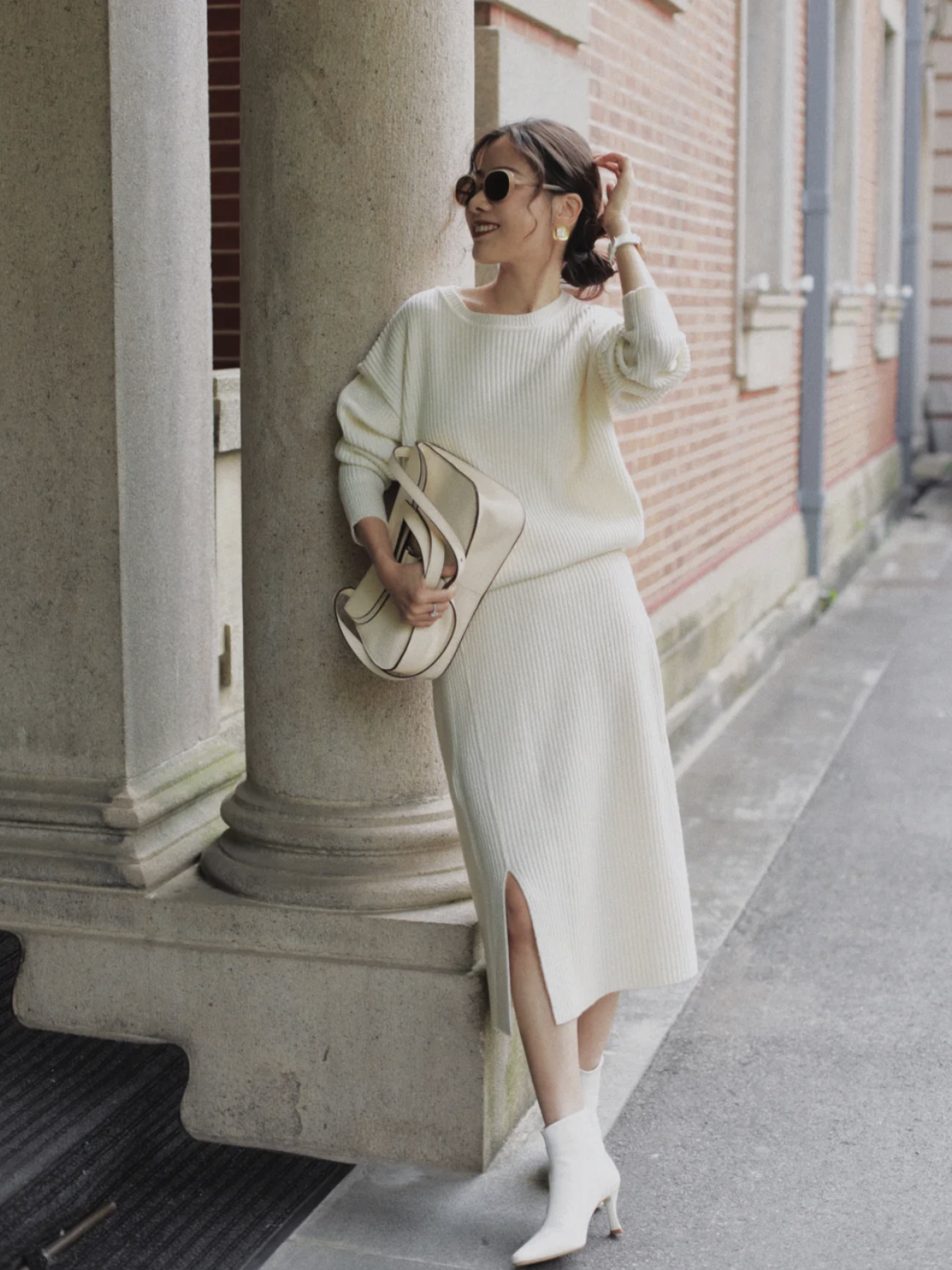 最簡單但是最有質感的穿法就是毛衣成套穿,一樣的配色搭配起來方便耐看,很高級!