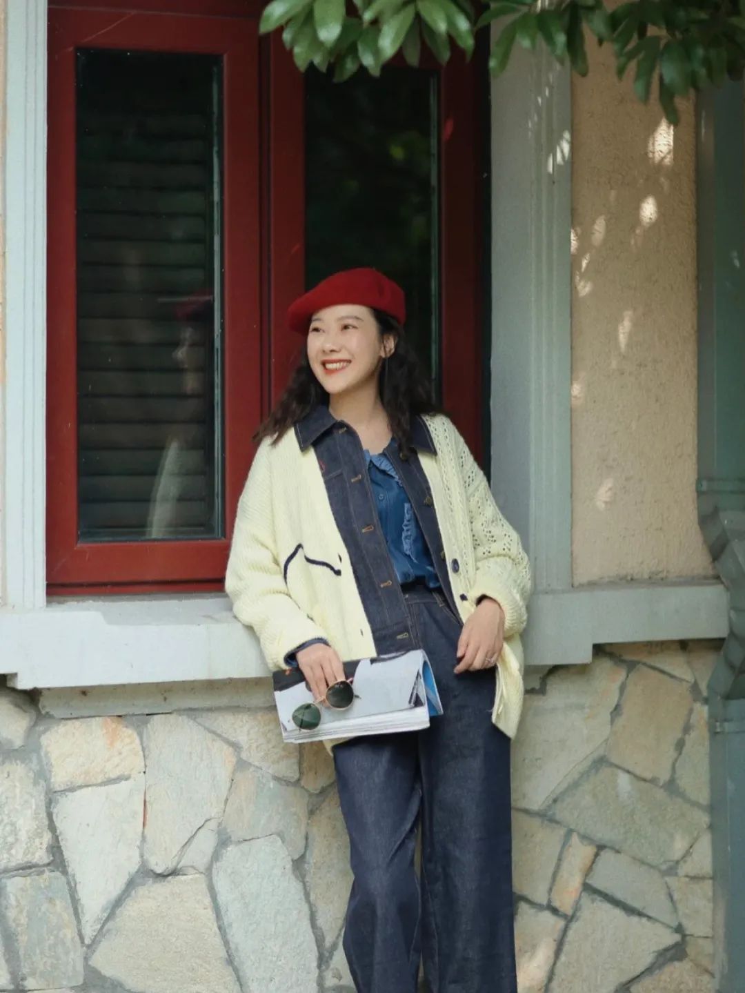 牛仔衣是很典型的美式西部風格,看似和規整的毛衣不相搭,但就是這種印象上的矛盾感,才更耐人尋味~