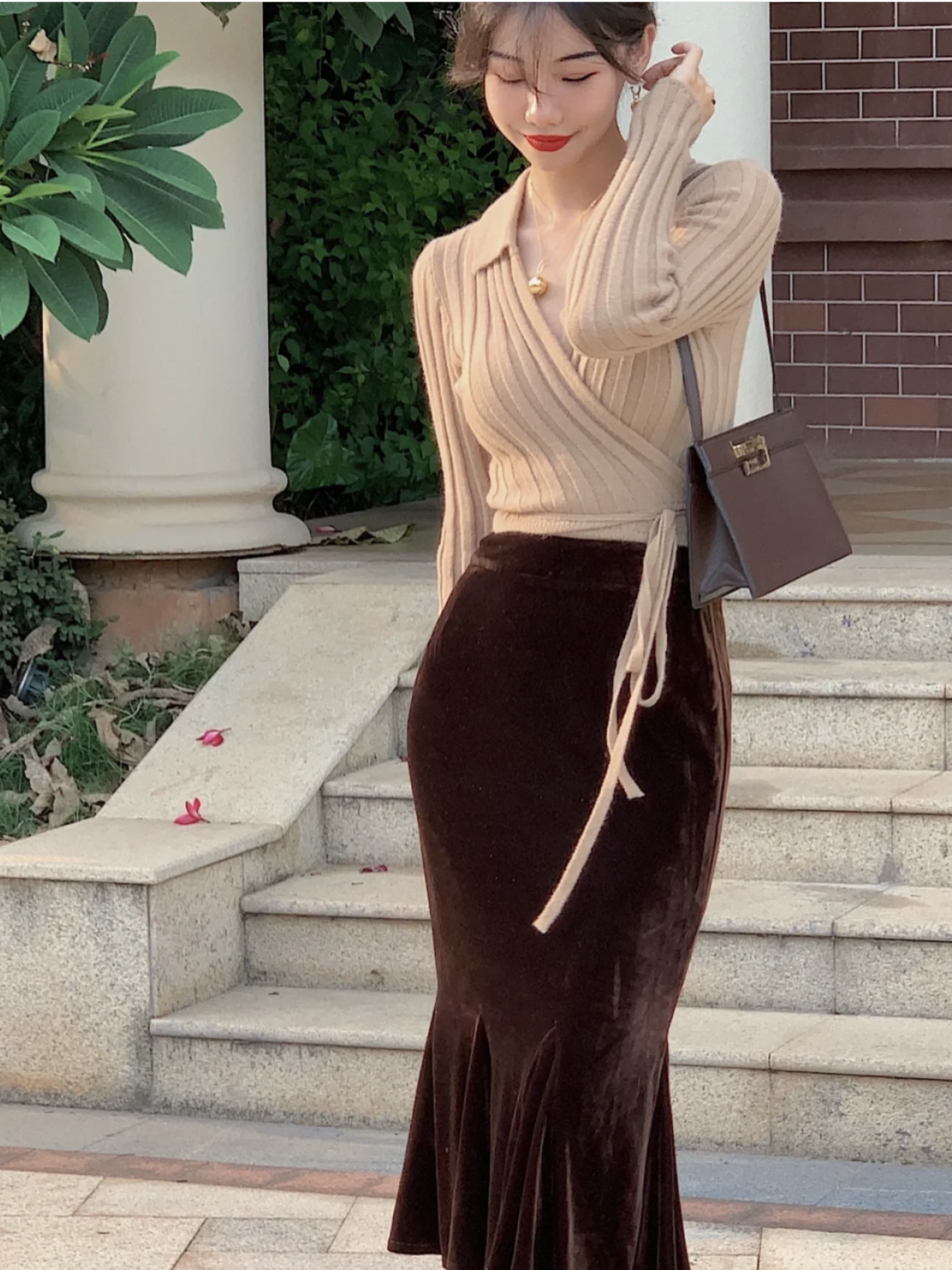 最有女生味的當屬魚尾裙,柔和清淺的白色毛衣一上身,好身材一覽無餘,相當有親和力!