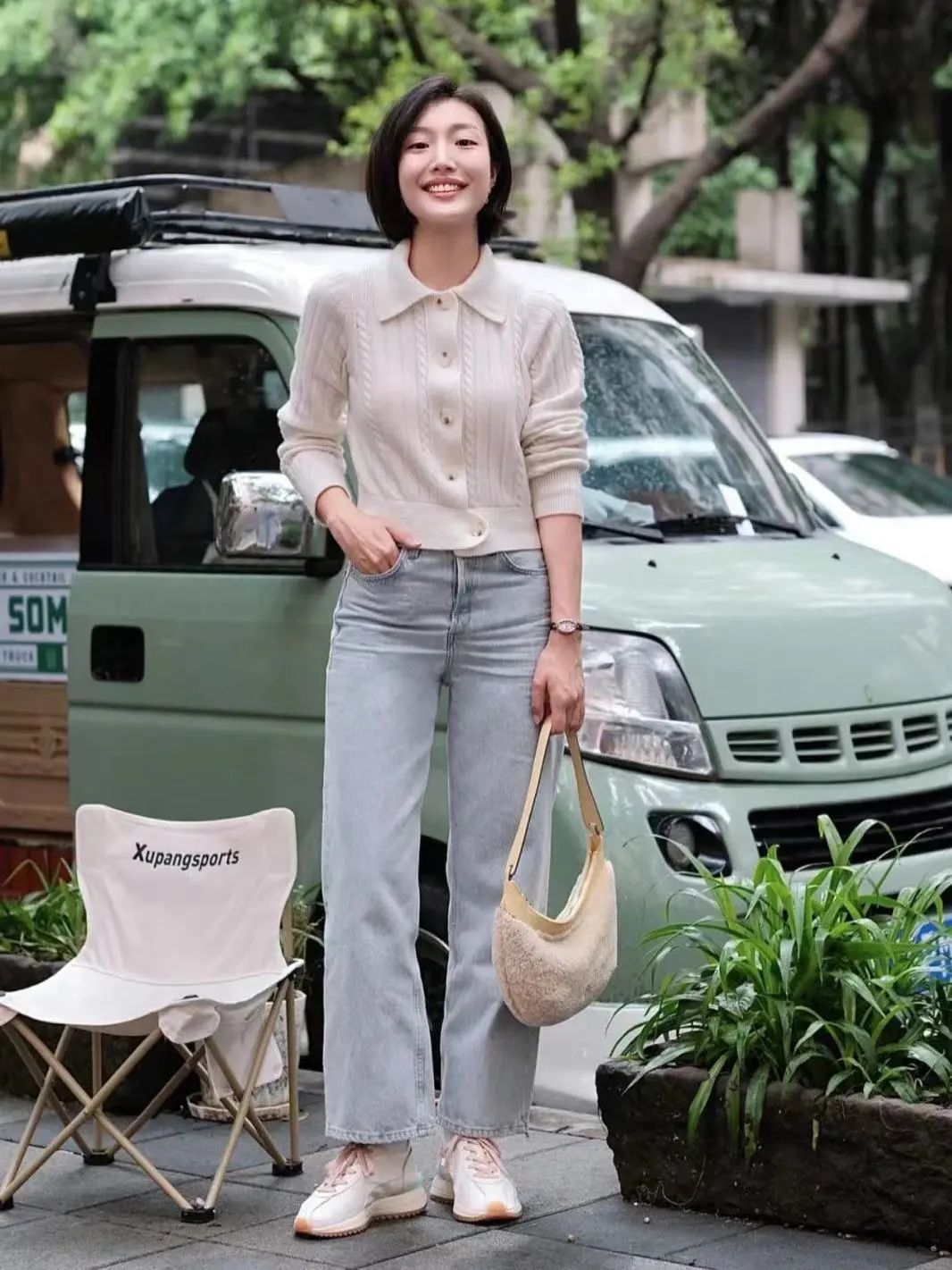 梨形身材一定要嘗試的MomJeans(媽媽褲)和奶奶衫搭一起,時髦又顯瘦。