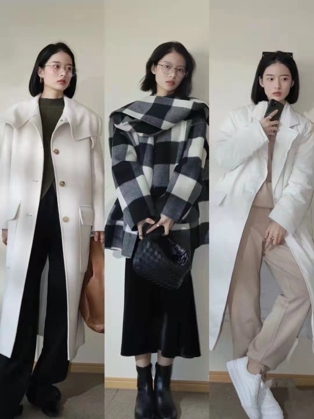 如果想要嘗試輕鬆休閒感,還有別的款式來選,值得愛美人士來挑選。像大衣選擇上主要以淺色為主,沒有那種老氣感,青春又減齡。至於大衣版型上,主要以H款式為主,身材那是很高挑。還有人愛穿格紋毛衣+黑色半身裙,色彩上遙相呼應,氣質上很高級。