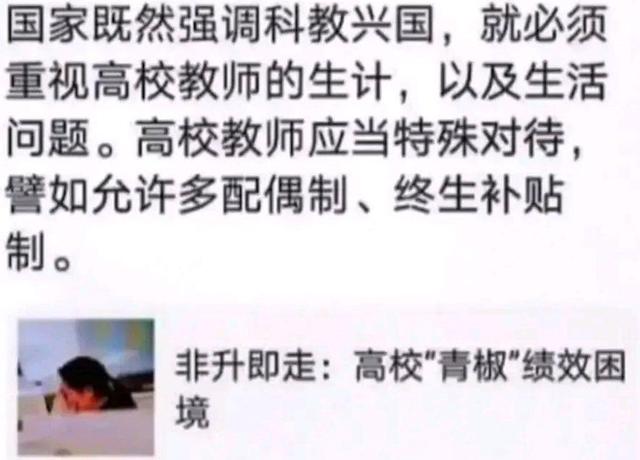 人家包教授的本意就是倡導「高校教師多配偶制」,認為非行政序列的高校教師太辛苦,實行多配偶制可以照顧生活,這樣高校教師沒有後顧之憂,心情也好,就願意響應國家三胎政策生孩子了。