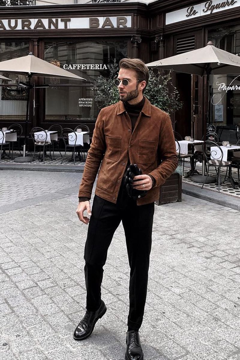 以棕色為代表的暖色調配色,就能夠完美融合到黑色調造型之中,讓你冬季搭配變得更加豐富時髦。當選擇棕色與黑色單品進行簡單疊穿時,似乎整體色調有所「回暖」,一改黑色調的高冷范。