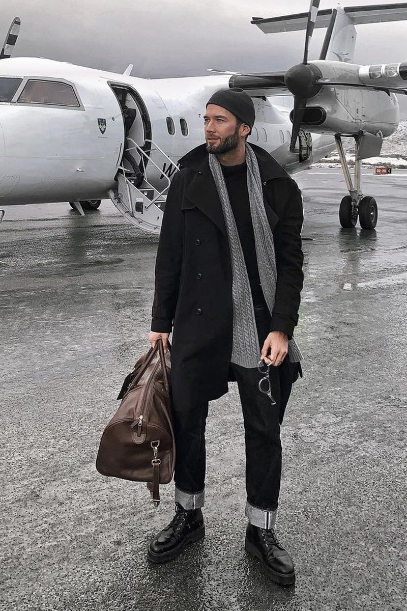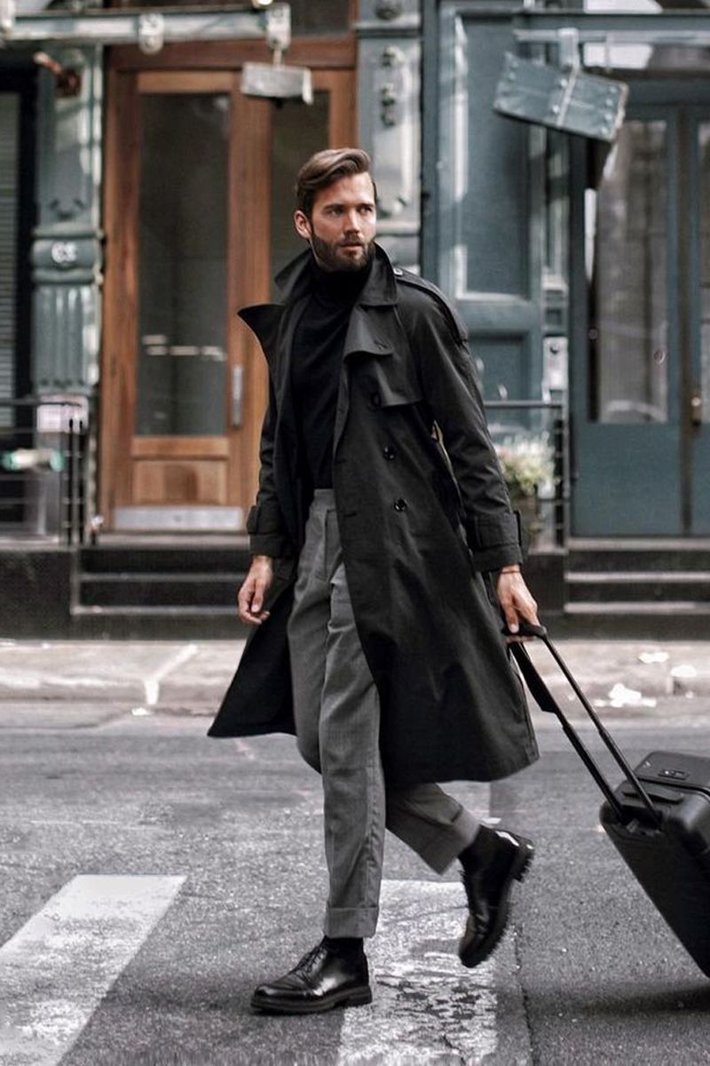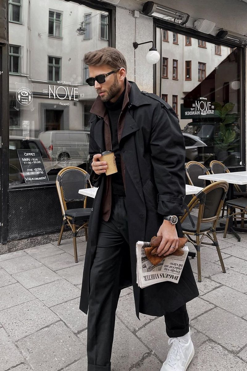 長大衣是男士們冬季搭配中出鏡率超高的單品之一,而黑色大衣更是常見。在選擇黑色長大衣這種長款單品時,你要注意版型的選擇。由於整體色調一致,而長大衣的材質與長度又會稍帶沉重感,如果版型太過寬鬆,就會讓整個人看起來毫不利落,從而使造型大打折扣。所以,黑色調冬季搭配中,長款單品的版型要得體。